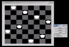 Hierbei handelt es sich um die Umsetzung eines Suchproblemes im Bereich der KI. Es sollen 8 Damen so auf einem Schachbrett platziert werden, dass keine die andere schlagen kann. Dieses Programm findet durch (heuristische) Suche alle Möglichkeiten und stellt diese dar.